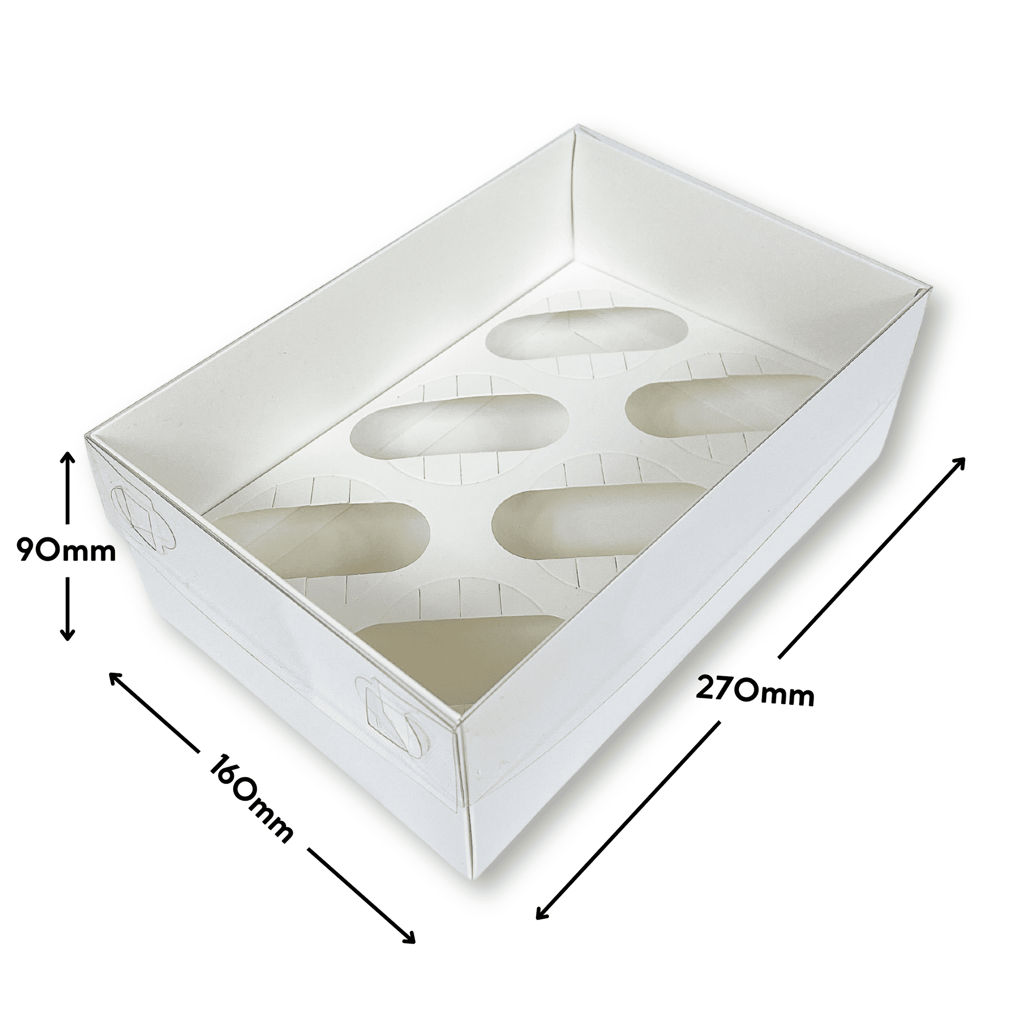 BULK OFFER - Extra-Tall White Cupcake Boxes with Clear Lid (Holds 6) - 10 x Packs of 5 (50 Boxes)