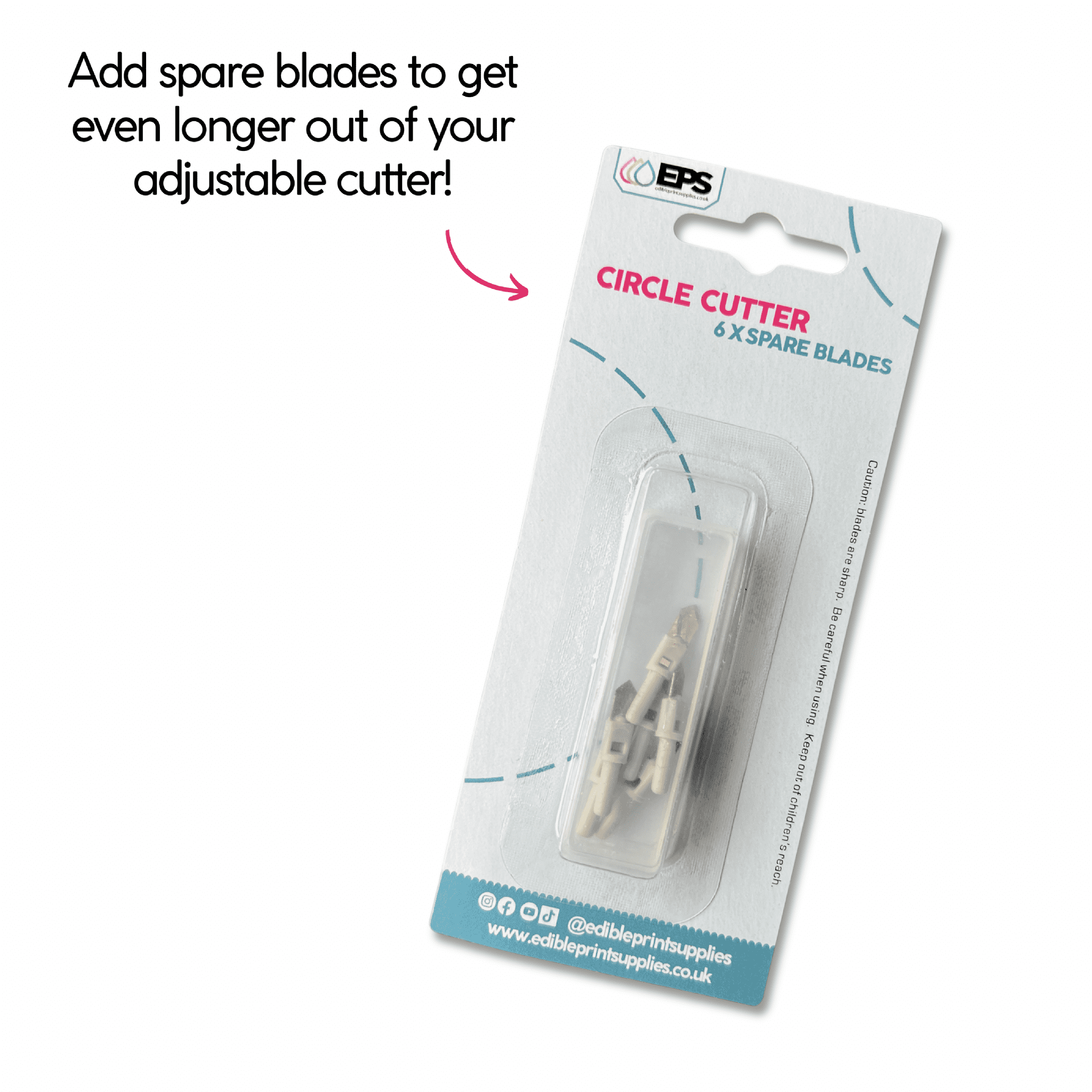 Our best value bundle of edible image cutting tools - EPS Cutting Mat for protecting your work surfaces, EPS Craft Knife for precise cutting of edible images and EPS Circle Cutter with adjustable blade to easily cut out circular edible toppers in your chosen size.